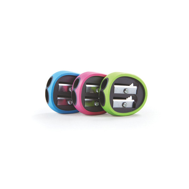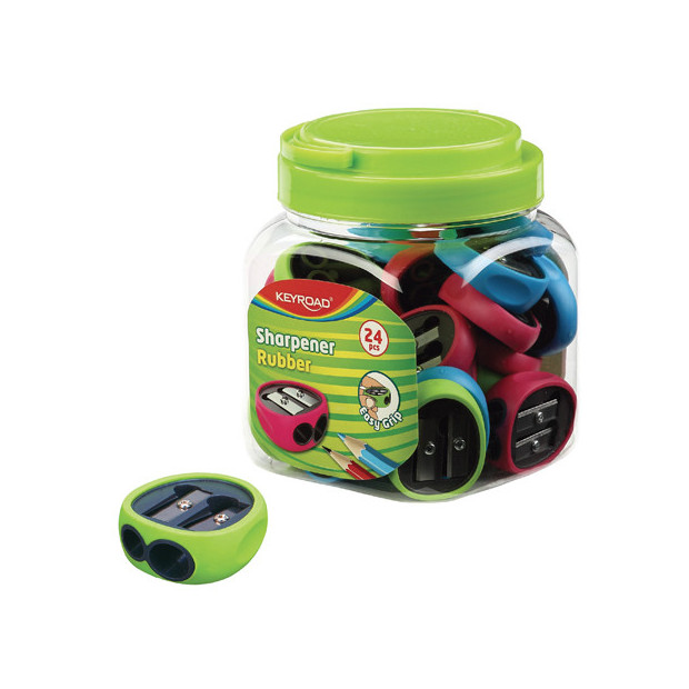Temperamatite con rivestimento in gomma morbida, facile da usare. In blister da 1 pz. singolo o in barattolo formato scuola da 24 pz.