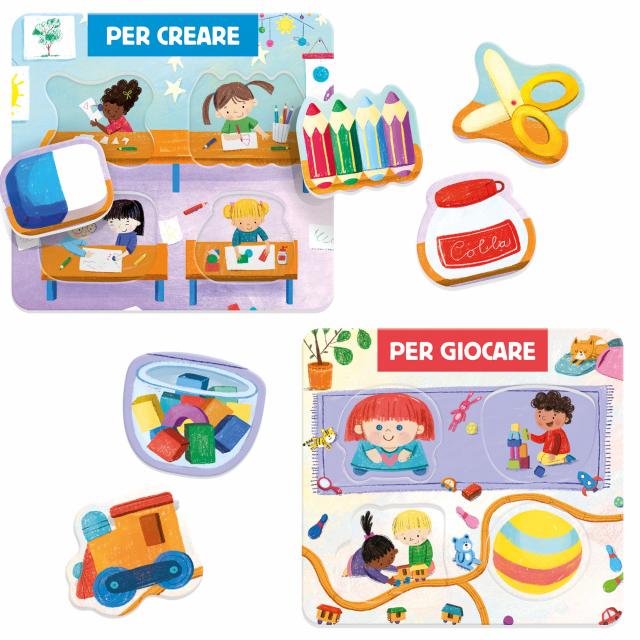 Con le forbici e la colla creo davvero tantissime cose! Con la bambola e la palla gioco e mi diverto! Ogni oggetto ha un suo utilizzo, gioca e scopri a cosa serve.
