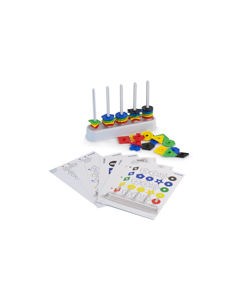 Questo abaco è composto da 5 colonne e da un assortimento di dischi in diverse forme geometriche e in colori assortiti. Include 24 schede di attività che promuovono la coordinazione occhio-mano e le capacità di pensiero logico attraverso l'impilamento e l'ordinamento dei pezzi. Dimensioni: 5 x 25 x 16,5 cm.