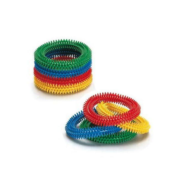 Anello morbido e flessibile munito di rilievi che trasmettono un piacevole impulso sensoriale. Utilizzato per molteplici attività ludiche ed educative, anche grazie ai 4 colori disponibili può altresì essere utilizzato in piscina, dove adagiandosi sul fondo consente di svolgere esercizi di apnea e recupero.