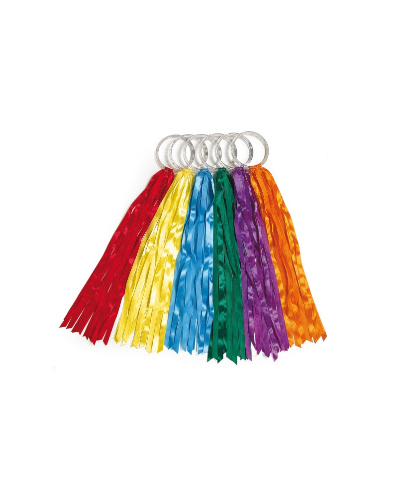 Una proposta di grande effetto coreografico, per facilitare esercizi di coordinamento o sottolineare gli ampi gesti della ritmica. Anelli in plastica diametro 12 cm, lunghezza nastri cm 60.