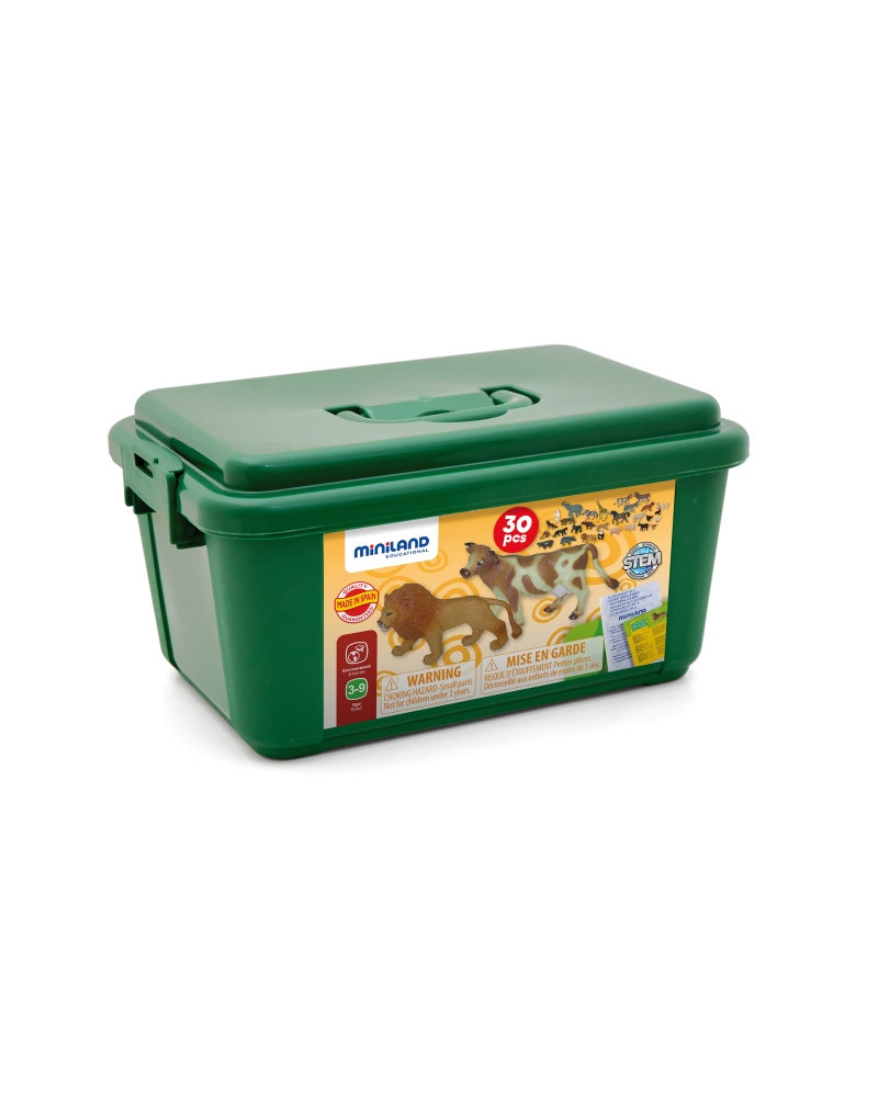 La confezione contiene una guida didattica per insegnanti con applicazioni per la classe e una brochure con le caratteristiche specifiche dei 30 animali realizzati con una plastica molto resistente e di alta qualità. Da 3+ anni.
