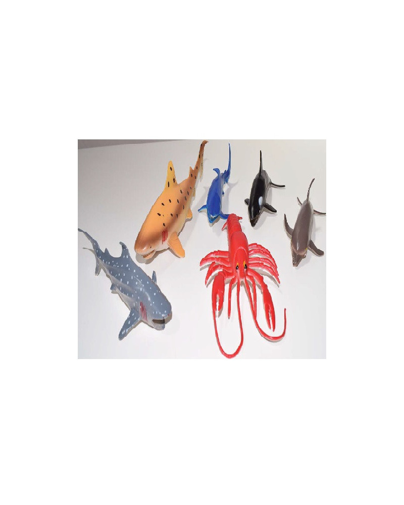 Confezione da 6 animali mariniin plastica. Dimensione squalo 12 x 4 cm. Da 3+ anni.