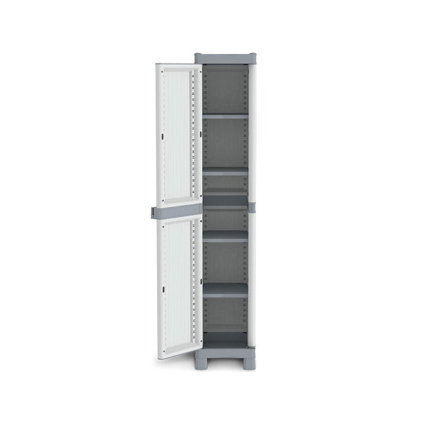 Armadio ad un’anta con 4 ripiani interni regolabili.