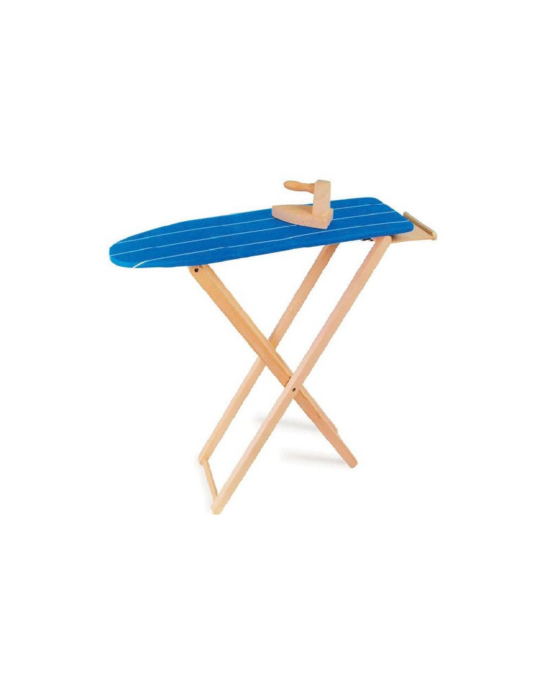 Asse completa di ferro da stiro in legno. La fantasia del rivestimento in tessuto può variare. Dimensioni ca. 60 x 25 x 54 cm. Da 3+ anni.