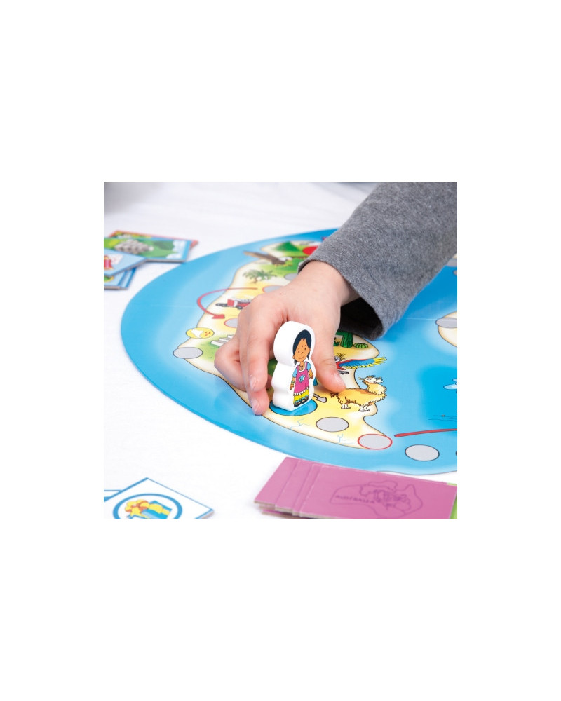 Accompagna i sei bambini nel loro viaggio intorno al mondo. Con 6 personaggi in legno, dado e tabellone 66,5 x 52 cm. Da 5+ anni.