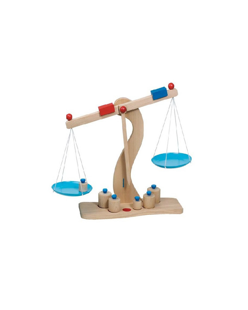 Bilancia con pesi in legno. La bilancia in legno è dotata di vassoi in metallo e 6 pesi in legno. Una splendida imitazione delle bilance di una volta. Dimensioni 30 x 10 x 31 cm. Età 3+ anni.