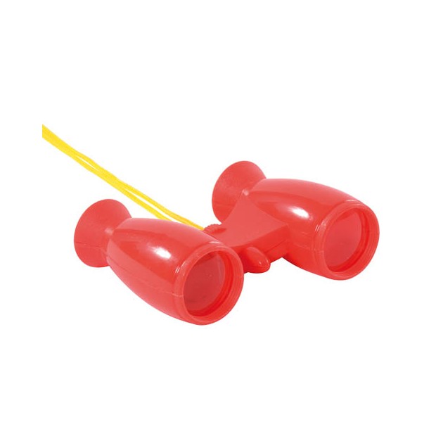 Binocolo con cordino. Dimensioni: cm.10x6,8x3,3. Lenti in materiale sintetico da 5x25 mm.