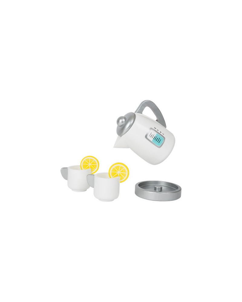 Bollitore e accessori in legno. Dimensioni bollitore: Ø 7,5 x 10 cm, tazza Ø 5 x 5 cm. Da 3+ anni.