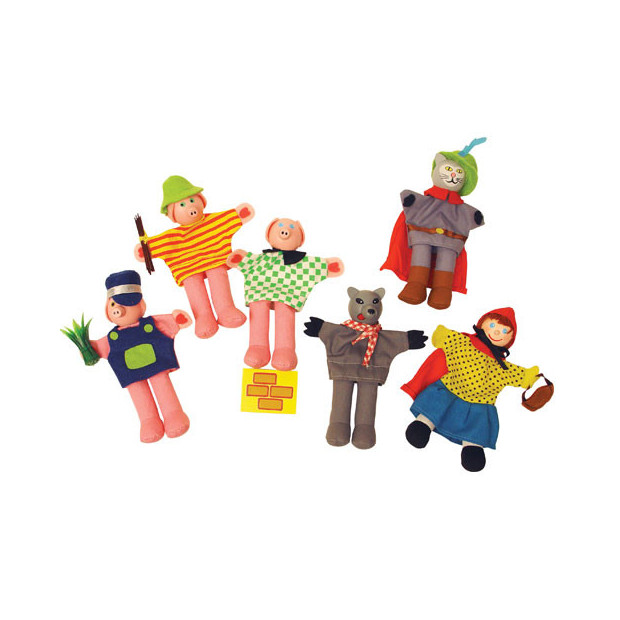 Art.BJ705 Burattini da dita 3 STORIE CAPPUCCETTO ROSSO, 3 PORCELLINI, GATTO CON GLI STIVALI Totale 6 pezzi. Altezza burattini cm.12.