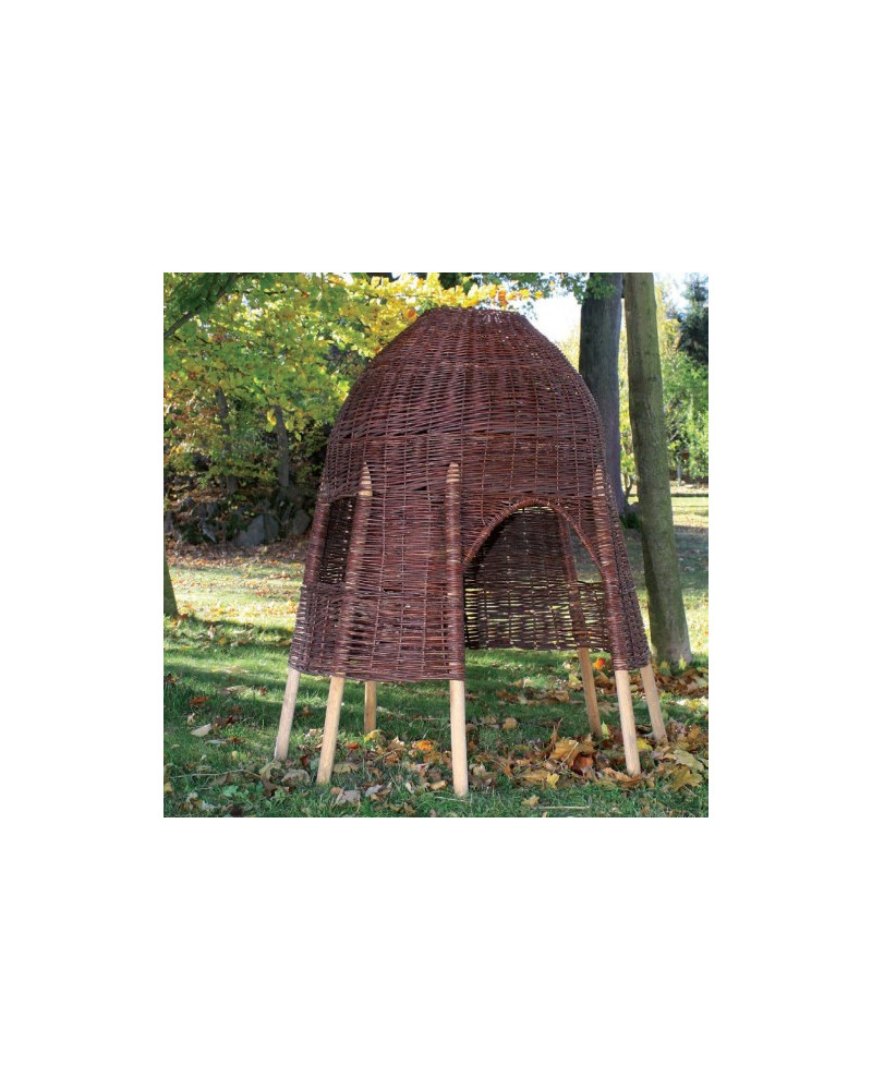 Le capanne di salice sono luoghi di ritiro, grandi nascondigli e ispirano giochi di ruolo fantasiosi. Si adattano magnificamente all’ambiente naturale, possono essere ricoperti di piante rampicanti, “spalmati” di argilla o colorati. Il cottage di salice ha un portone a ruote, tre piccole finestre e un’apertura nel tetto. Struttura della capanna in salice. Dimensioni 115x75x125 cm