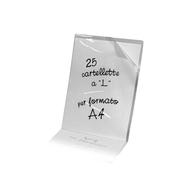 Cartelletta Trasparente portadocumenti a "L". Prodotte in polipropilene trasparente, in formato A4. Disponibili in 3 tipologie di alti spessori.