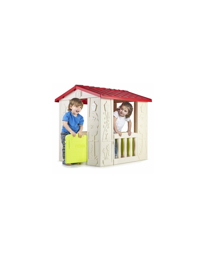 Casetta semplice in plastica resistente agli agenti atmosferici. Fornita di semplici istruzioni di montaggio. Dimensioni : 90 x 100 x 100 cm.