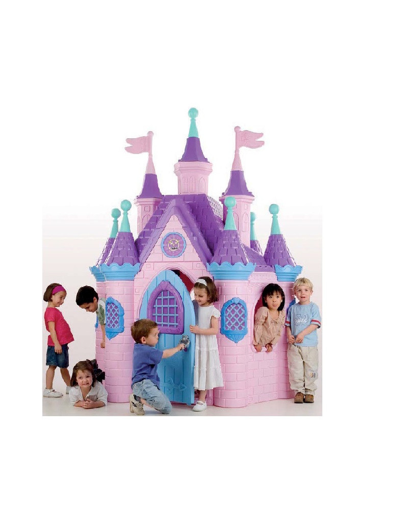 Maxi castello con 6 torri esterne e torrioni che lo sovrastano. L'esterno riprende un motivo a mattoni con vari fregi e decorazioni. Le pareti interne sono decorate in rilievo con disegni di mobili antichi. Lo spazio e' illuminato grazie alle grandi finestre che si aprono su tutti i lati. Fornito di semplici istruzioni per un facile montaggio. Dimensioni cm. 147x198x249