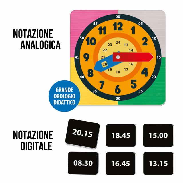L'ora digitale e analogica; La giornata e la settimana; Tempo ciclico e concetti temporali; Socializzazione e rispetto delle regole; Intelligenza prevalente coinvolta: naturalistica; Altre intelligenze coinvolte: linguistica, logico-matematica.