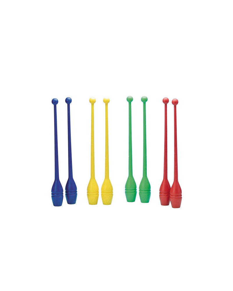 Coppia di clavette realizzate in Moplen, misurano cm 44,5 e pesano 154 gr in conformità alle norme della FGI. All'estremità del collo della clavetta è presente un elemento sferico che ne facilita la presa, l'impugnatura, e permette di girarla.