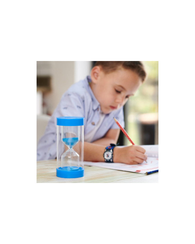 Clessidra a sabbia posta su base esagonale. Dimensioni 7 x 16 cm.