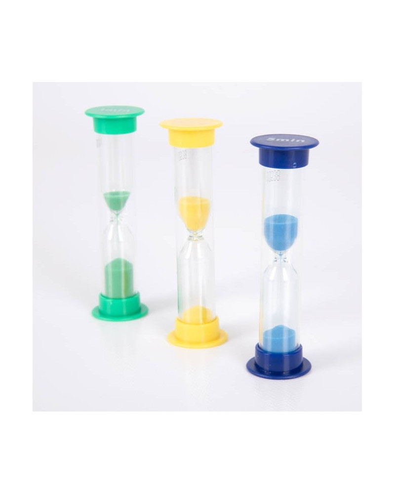 Set di 3 clessidre da 1min, 3min e 5min. Altezza 9 cm.