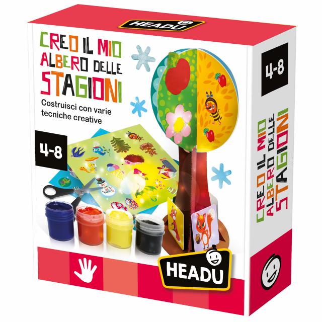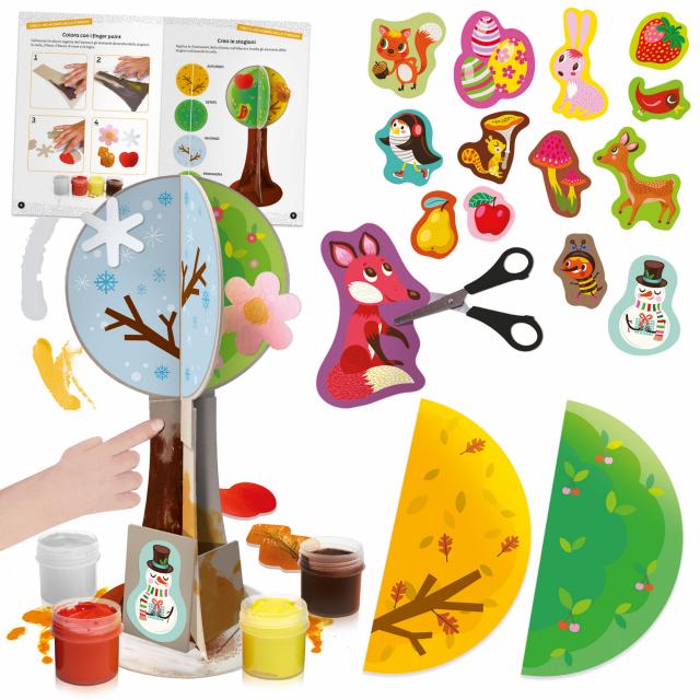 Costruisci il tuo albero delle stagioni e crea un colorato portaoggetti per abbellire la tua cameretta. Lo puoi decorare con i cartoncini e la pittura per le dita! CONTENUTO: Albero da costruire in 3D; Carte delle stagioni; Cartoncino da ritagliare; 4 barattoli di finger paint; Colla; Forbici; Istruzioni