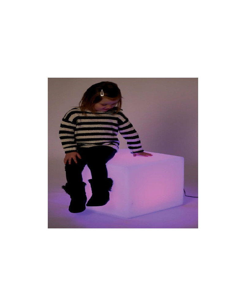 Cubo di plastica cavo e ultraresistente che emette una luce soffusa e rilassante, perfetta per creare un’atmosfera tranquilla in ambienti sensoriali o spazi educativi. Il design robusto ma leggero la rende facile da spostare, utilizzare sia all’interno che all’esterno e semplice da pulire. Grazie al telecomando incluso, è possibile selezionare uno dei 16 colori disponibili o attivare la transizione graduale tra le tonalità per una diffusione uniforme della luce su tutta la superficie. lIl cubo si inserisce nella presa di corrente per essere ricaricato. Con un ciclo di ricarica di 6 ore può essere staccato dalla presa ed essere utilizzato ovunque per una durata media di 10 ore. E' resistente all'acqua IP65. Lato 40 cm. Adatto per l'uso con bambini sotto la supervisione di un adulto.