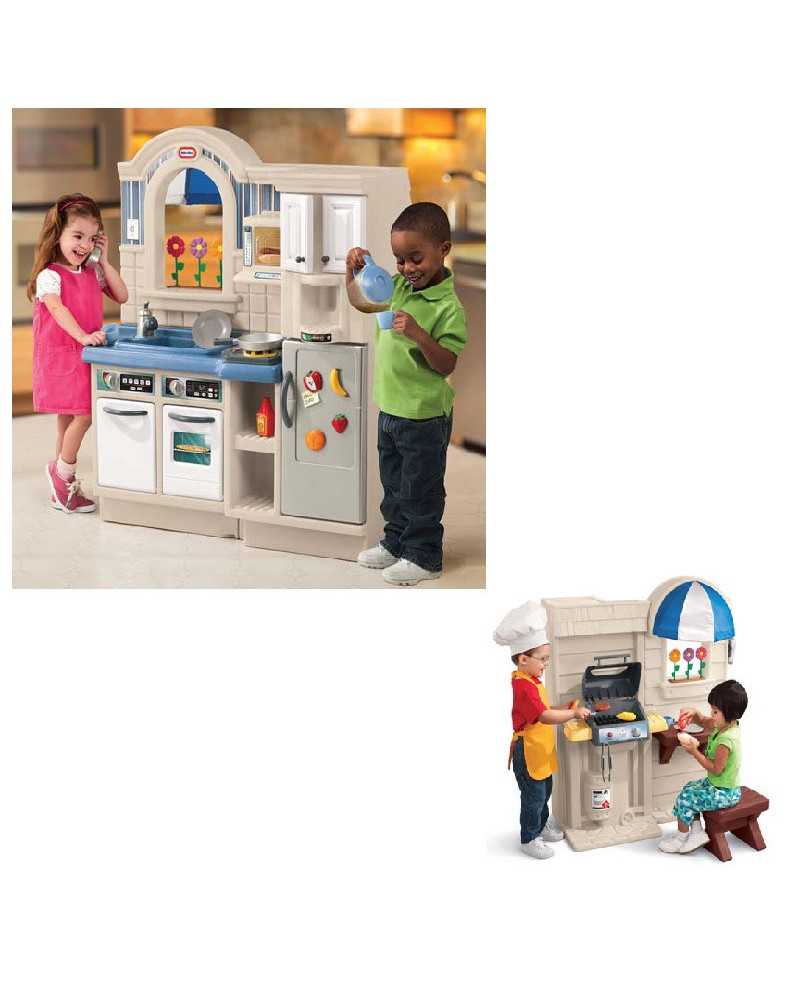 Due ambienti di gioco in uno. La cucina deluxe include una caffettiera "magica" e piano di cottura che riproduce suoni elettronici. L'ambiente esterno include tenda in tessuto, tavolo da picnic con panca e fiorellini. Il grill produce suoni caratteristici e fiamme realistiche. Cappello da cuoco e 29 accessori inclusi. Batterie non incluse. Con istruzioni di montaggio. Dimensioni. 94 x 67 x 114 cm. Da 3+ anni.