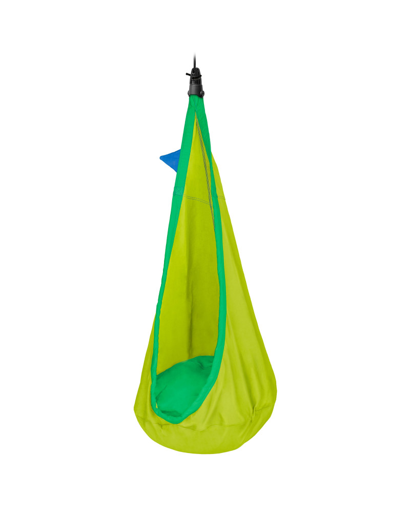 Culla pensile per bambini in cotone biologico con sospensione. la Tana Pensile deve essere applicato soltanto su fondo portante come cemento o spesse travi di legno. Altezza minima richiesta: 200 cm; Capacità di resistenza: 80 kg; Dimensioni 70x150 cm. Età 3+ Installazione previa verifica del soffitto, incluso kit per il fissaggio.