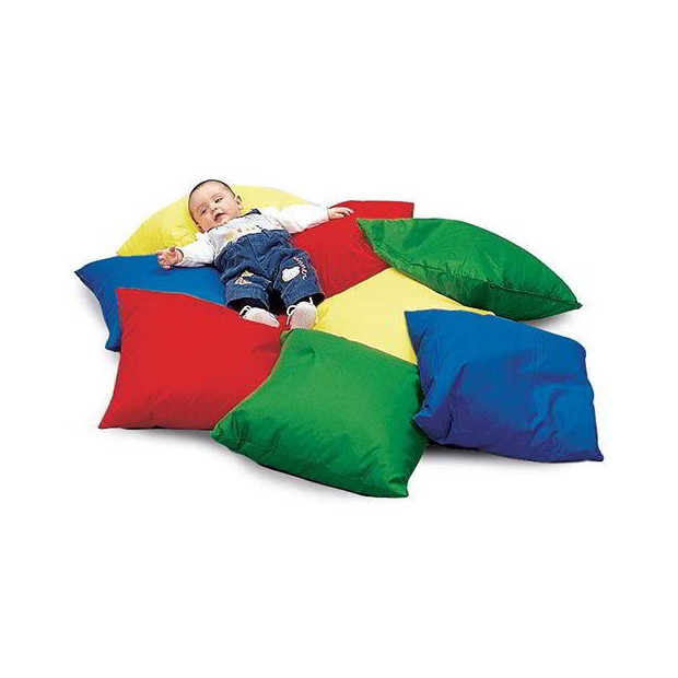 Cuscinoni soffici e morbidi al tatto dai colori vivaci. Imbotti con polistirolo granulare espanso. Le fodere sono realizzate con tessuto di trevira, molto resistente. Atossico, lavabile a 40°. Disponibili in 3 versioni: