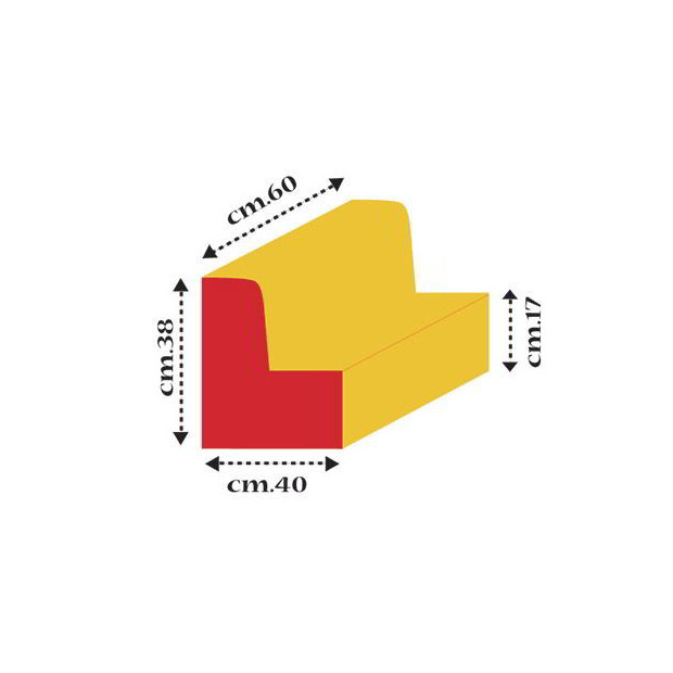 Divanetto morbido ideale per creare un angolo in cui giocare, leggere e rilassarsi. Adatto per asili nido. Rivestimento in ecopelle facilmente lavabile con un panno umido. Dimensioni cm. 40x60x38 h - livello seduta 17 cm.