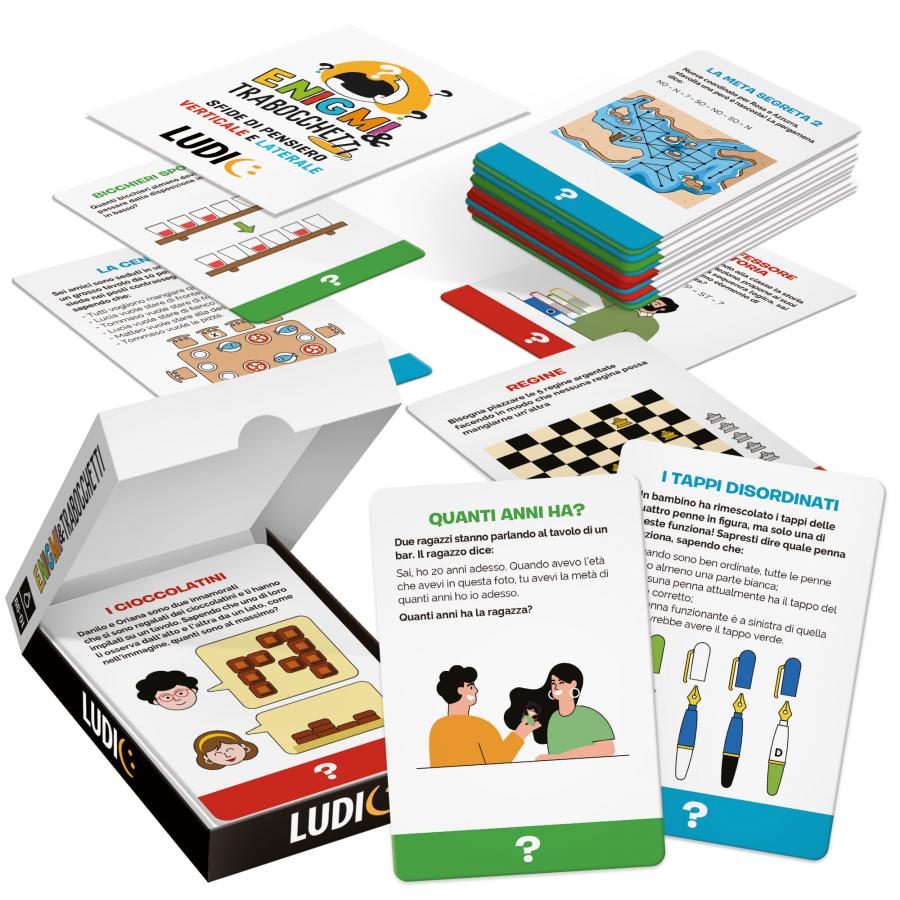 Contenuto: 50 carte con enigmi e soluzioni; Regolamento