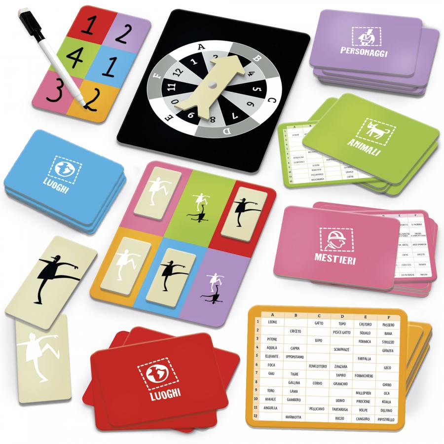 Contenuto: 30 schede-copione; 6 carte Guess; 1 plancia spinner; 1 plancia voto; 1 scheda segnapunti; 1 pennarello cancellabile; Regolamento