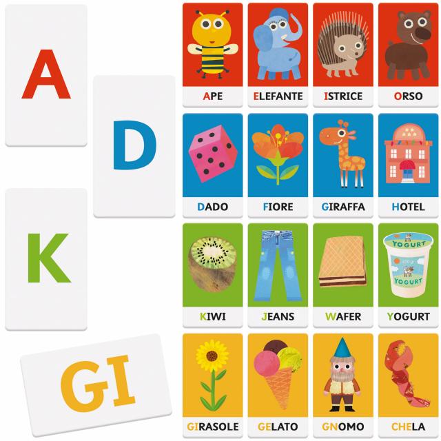 Riconoscere lettere e parole; Ampliare il vocabolario; Ascoltare la corretta pronuncia delle parole; Scoprire il mondo attorno; Allenare la memoria visiva; Intelligenza prevalente coinvolta linguistica; Altre intelligenze coinvolte: personale, visivo-spaziale.
