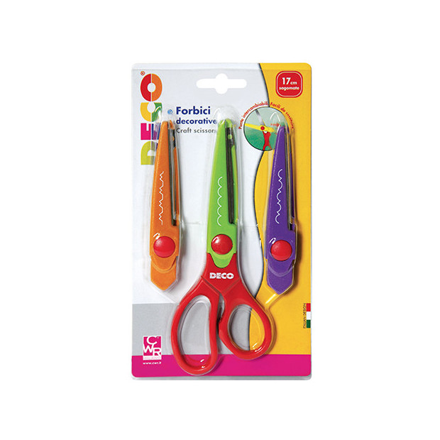 Originali forbici per decorazioni, basta scegliere l'effetto desiderato, montare la lama corrispondente sull'impugnatura per ottenere simpatici effetti. Disponibili col ricambio a 3 e a 8 lame.