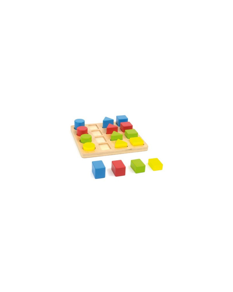 Gioco educativo per introdurre e insegnare concetti multipli come forme geometriche, dimensioni e colori, attraverso attività divertenti come l'accatastamento, lo smistamento e il conteggio. Oltre a insegnare forme geometriche, colori, dimensioni e imparare a contare, questo giocattolo sviluppa anche la coordinazione occhio-mano e le capacità motorie. Dimensioni: 20 x 20 x 2,5 cm.