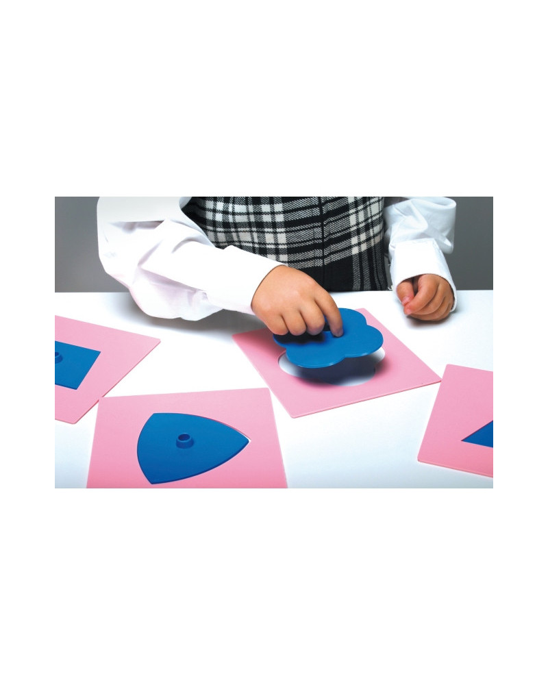 Una forma può entrare nella cornice di un’altra, ma la non perfetta corrispondenza segnala al bambino che l’abbinamento non è corretto. I semplici contorni geometrici invitano a ripercorrerli con la matita. Contenuto: 10 forme geometriche e relative cornici. In plastica; lato cm 14.