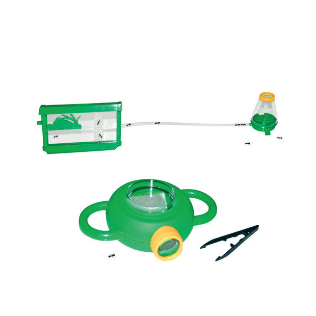 Una vera e propria stazione d'osservazione delle formiche e di altri insetti. La stazione di osservazione aggiuntiva, che include una lente d'ingrandimento a 2 vie ed un paio di pinzette, serve per esaminare più da vicino animali e piante.