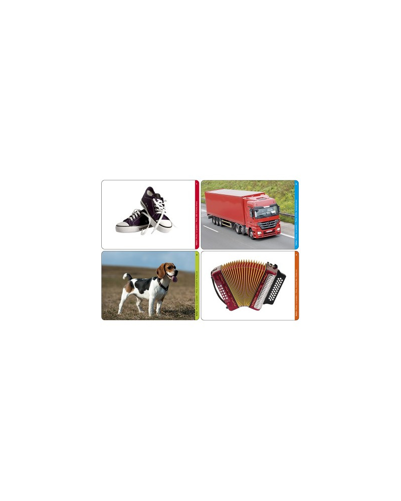Confezione da 48 foto 12x8.5 cm per arricchire il vocabolario della vita quotidiana del bambino. Sono inclusi 6 argomenti: giocattoli, vestiti, igiene, mezzi di trasporto, animali da fattoria e strumenti musicali. Da 2+ anni.