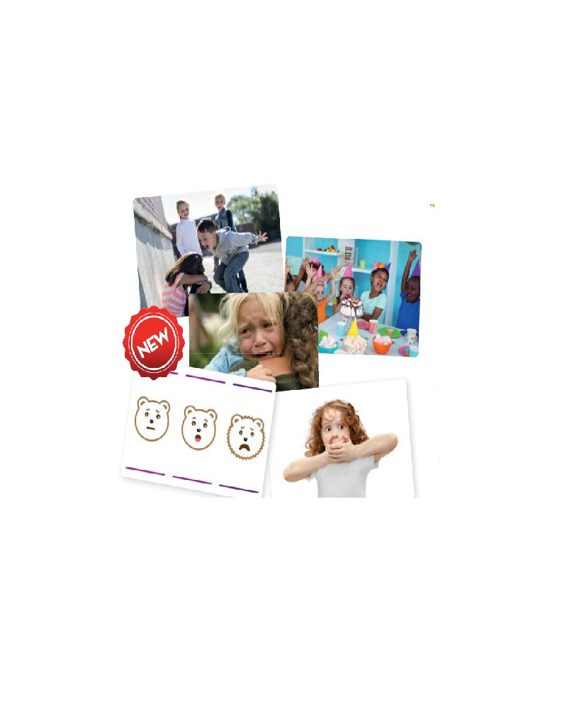 La guida pedagogica presenta le situazioni linguistiche concrete da realizzare con i bambini, in relazione alle attività di osservazione, classificazione ed espressione. Esempi: ordinare e classificare le emozioni, associare le foto tra loro e giustificare, raccontare una storia, imitare una commedia, rappresentare attraverso il disegno, ecc. Il box comprende 3 serie di immagini:- 42 scene fotografiche permettono di identificare le diverse emozioni e la loro gradazione (un po', molto, eccessivamente);- 10 foto su sfondo bianco illustrano le emozioni (gioia, tristezza, rabbia, paura, sorpresa).- 8 carte illustrate simboleggiano la gradazione delle emozioni. La scatola contiene: 60 carte a colori 21 x 15 cm. e 1 guida pedagogica. Da 4+ anni.