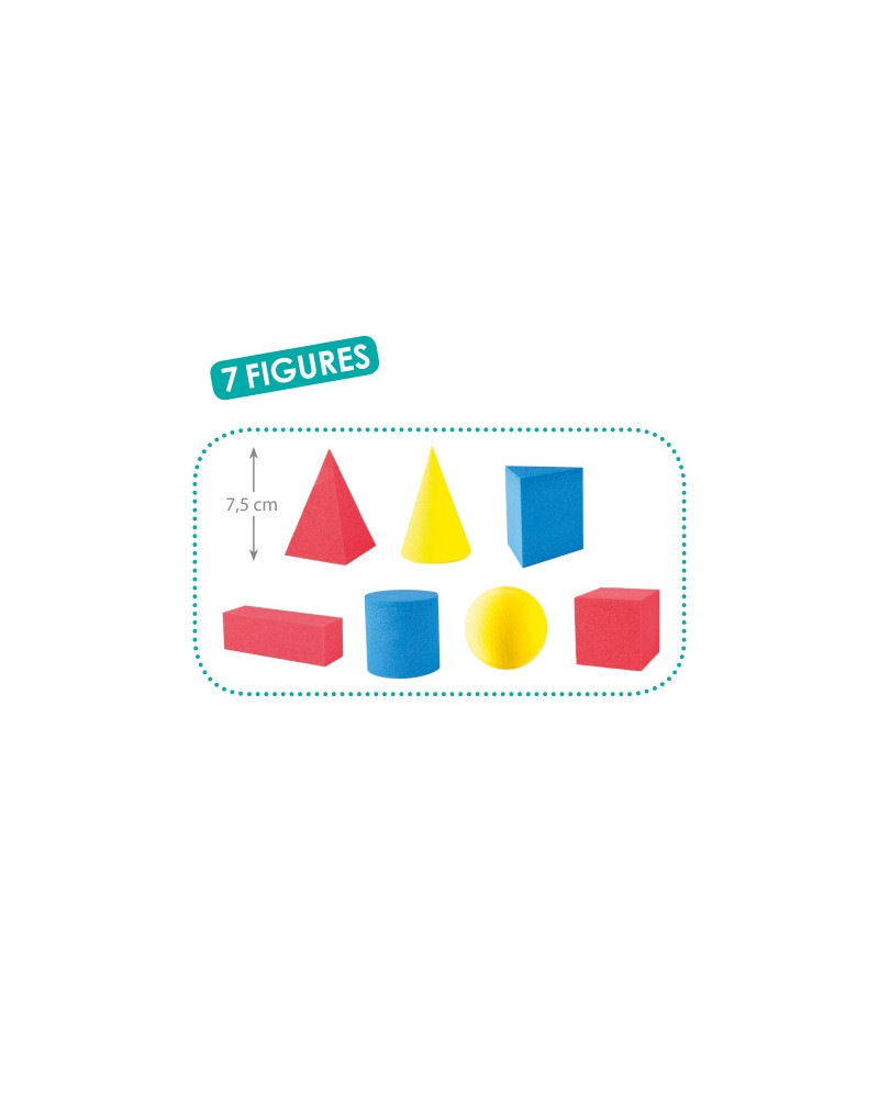 Per giochi di identificazione, classificazione e raggruppamento. Con guida pedagogica. In EVA e cartoncino; 7 solidi, 35 carte-foto; lato cubo cm 5.