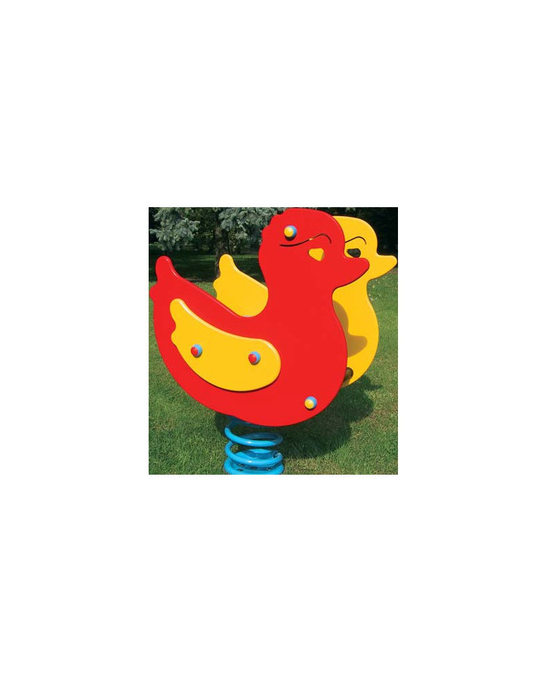 Giochi a molla realizzati interamente in polietilene PE-HD colorato in massa, ad alta densità e COMPLETAMENTE RICICLABILI. Il polietilene è trattato contro i raggi UV e presenta solidità alla luce con valore 8 (scala di Lana 1-8). Il gruppo molla è in acciaio verniciato a polveri epossidiche e cotta a forno a 200°C. Completi di telaio in acciaio zincato utile come supporto per il fissaggio a terra. MANUTENZIONE RIDOTTA DEL 90% rispetto ai giochi tradizionali in legno. Tutti i componenti del gioco sono disponibili come parti di ricambio. Il gioco l è progettato e realizzato secondo quanto previsto dalla normativa UNI-EN 1176 Montaggio Escluso. Disponibile in 3 diverse tipologie