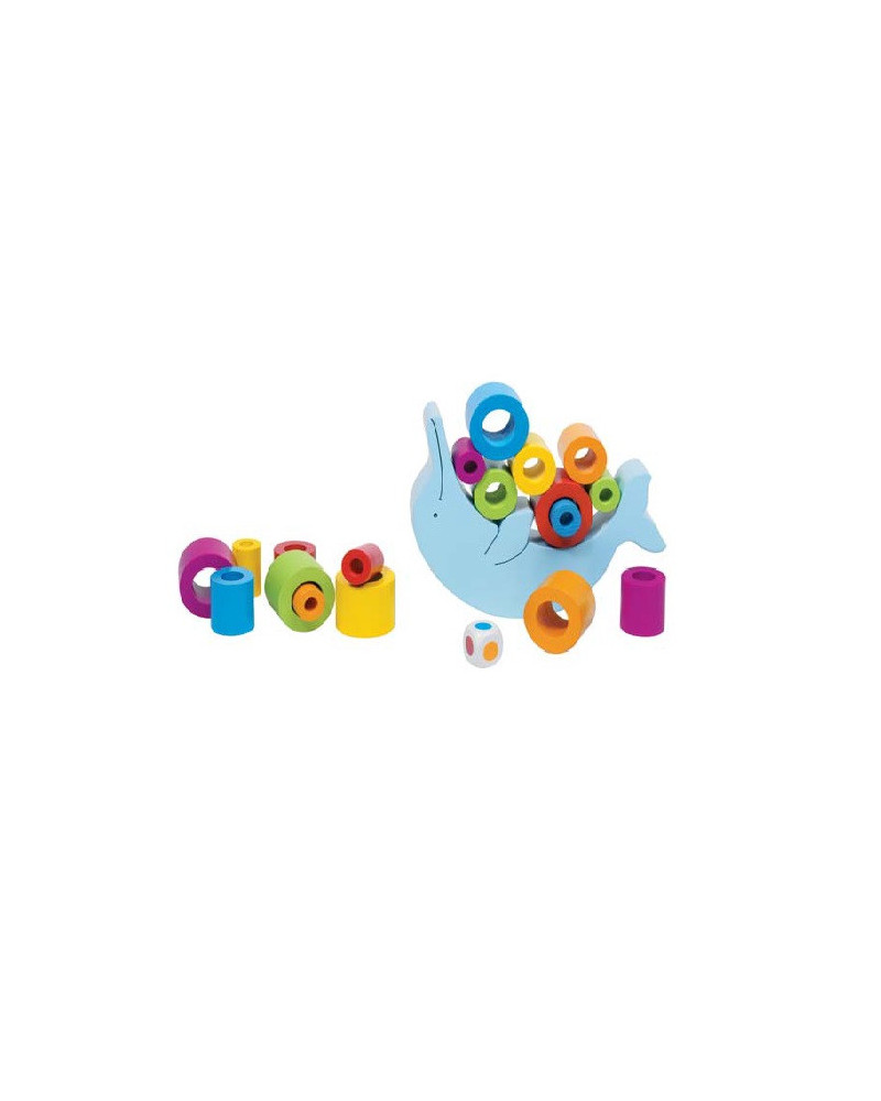 A questo delfino piace giocare con gli anelli colorati. Attenzione però a non farli cadere. Composto da 20 pezzi in legno. Età 4+