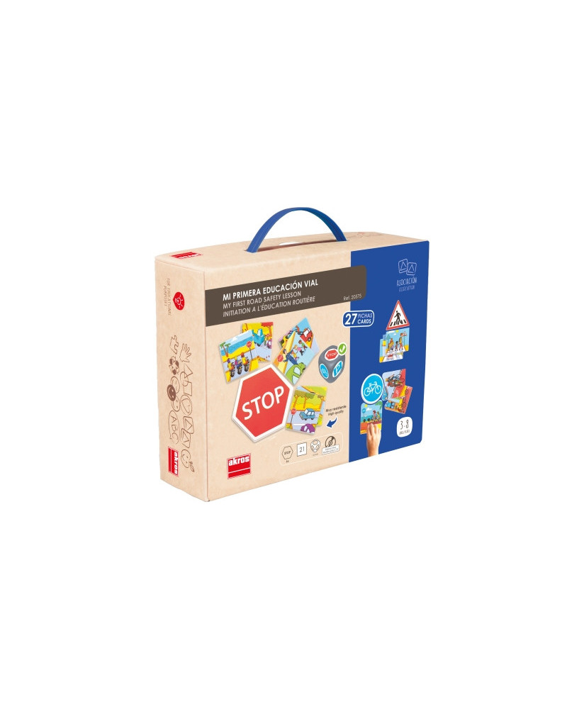 In base al segnale stradale che appare tirando il dado occorre associare le carte rappresentanti le situazioni che lo interessano. Comprende 6 segnali stradali, 21 carte, un dado e un CD con gioco multimediale. In pratica valigetta in plastica. Dimensioni carte 12,5 cm.