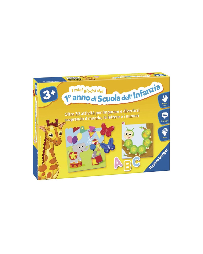 Il kit è molto ricco e contiene 10 colorate schede con oltre 20 attività creative ed educative per scoprire il mondo, le lettere e i numeri, proponendo diverse idee di gioco ed esercizi di prescrittura con diversi livelli di difficoltà; un tabellone con freccia girevole guida i bambini nelle attività. Le proposte di gioco favoriscono lo sviluppo della motricità fine, la capacità di linguaggio e il ragionamento logico; i giochi sono caratterizzati da un sistema autocorrettivo, i bambini quindi imparano divertendosi. Da 3+ anni.