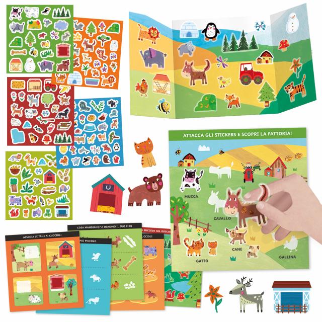Una linea di adesivi-gioco che stimola le intelligenze naturali dei bambini grazie al programma didattico a schede progressive e agli speciali stickers resistenti e riusabili. Dove vive la mucca? E la pantera? Scopri gli animali e i loro ambienti e divertiti ad attaccare e staccare gli stickers tutte le volte che vuoi. Con le schede attività imparare è un gioco divertente!