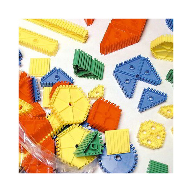 Gioco a incastro prodotto in materiale acrilico. Unendo i vari pezzi colorati il bambino può costruire simpatici oggetti, imparando la discriminazione di forme e colori. Costruzioni a forma di ingranaggi SUPER GLISSO, forme e colori assortiti. Scatola in cartone da 140 pezzi, contenente un libretto di istruzioni per costruire simpatici oggetti.