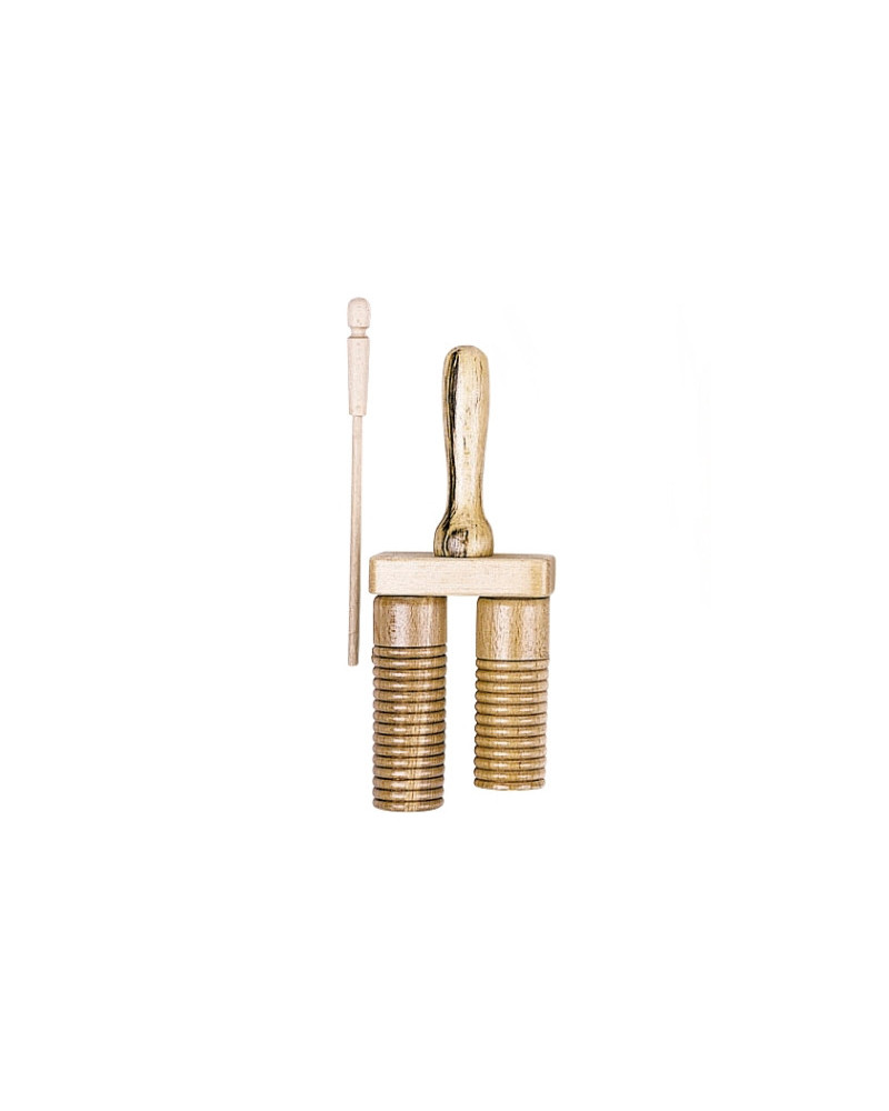 Guiro bitonale in legno. Dimensioni: 27,5 x 9,5 x 4 cm.