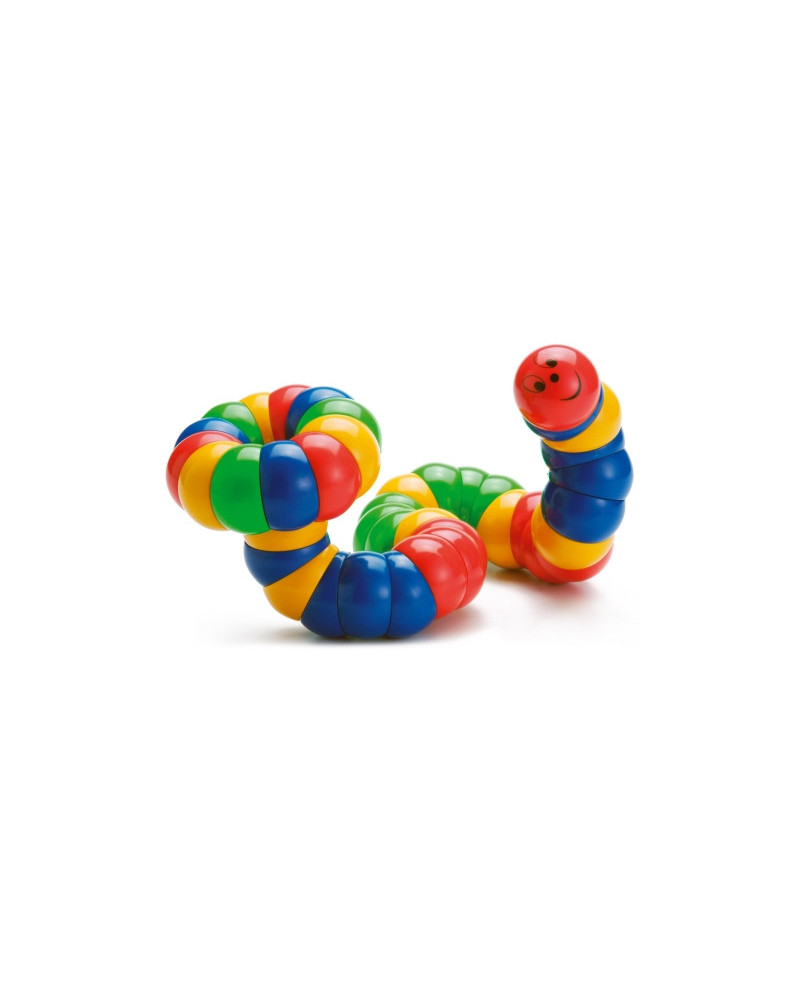 Bruchi multicolore da costruire che, grazie ai tanti anelli, possono muoversi e anche arrotolarsi su loro stessi. In plastica; 44 anelli, 3 teste e 3 code; ø elemento cm 5.