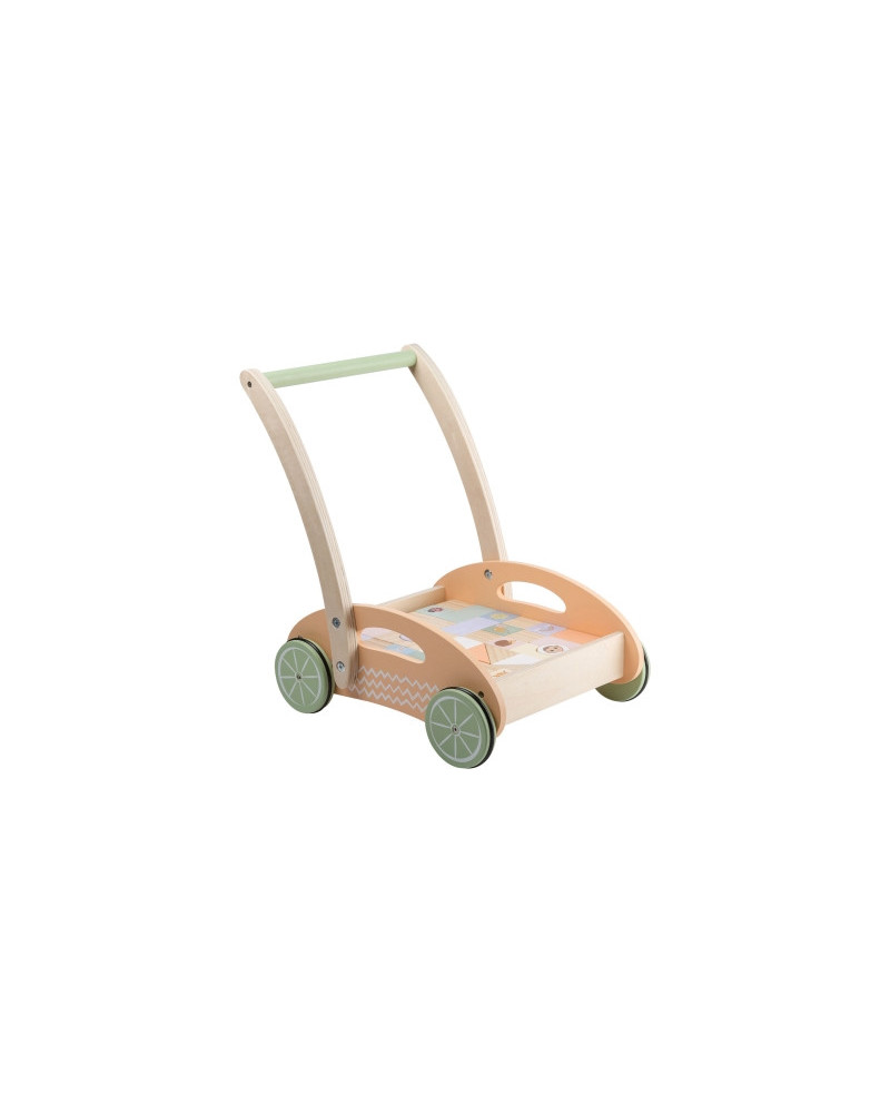 Un bellissimo carretto primi passi a spinta in legno pastello con blocchi. Grazie a questo giocattolo imparare a camminare sarà molto più facile e piacevole per il bambino. Il carrello ha una maniglia stabile e un set di 34 blocchi di varie forme e motivi inclusi:quadrati, rettangoli, triangoli in colori pastello. Sono perfetti per creare edifici unici e praticare piccole abilità motorie. In legno; misura 30,4 x 27 x 37,2 cm. Da 12 mesi