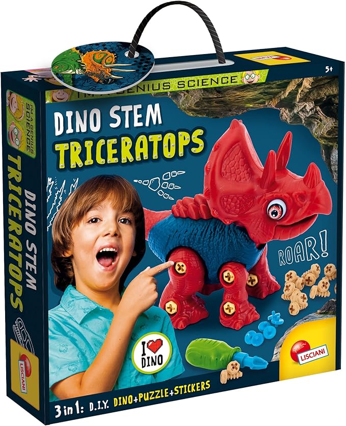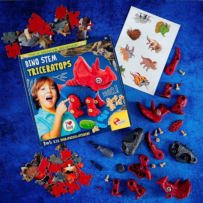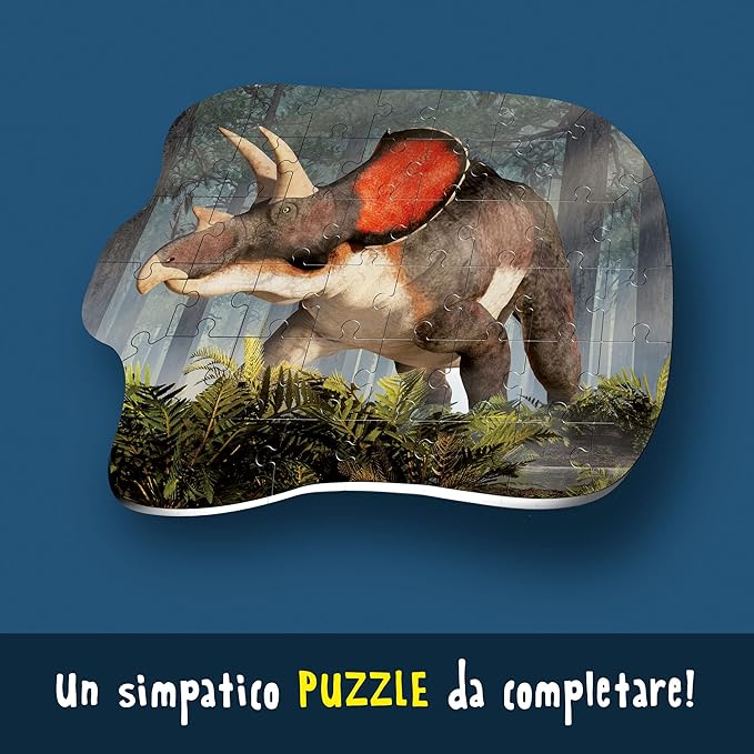 - Diy Dino, facile da costruire, grazie alle ruote sotto le zampe, il dinosauro si muove, con puzzle e stickers