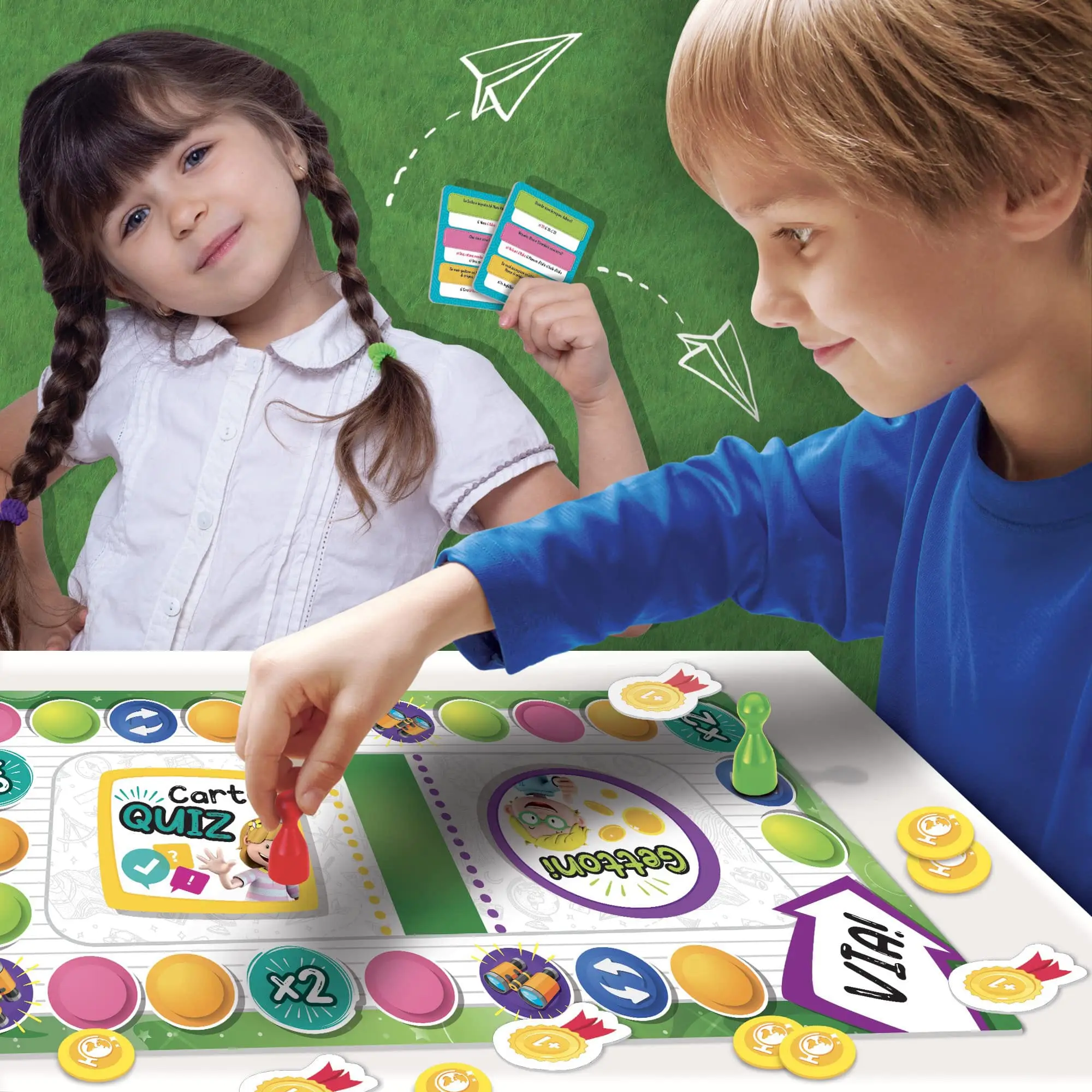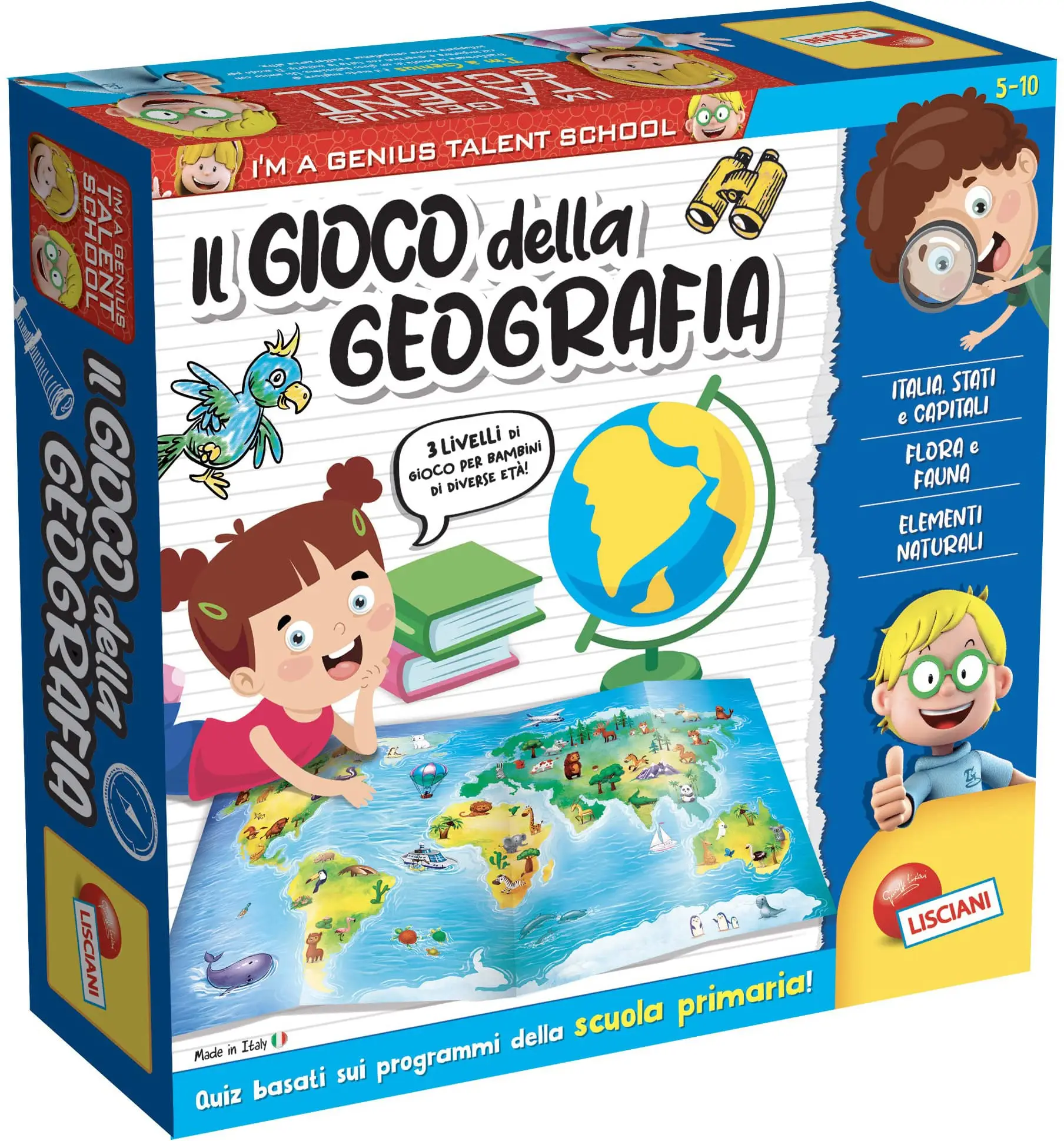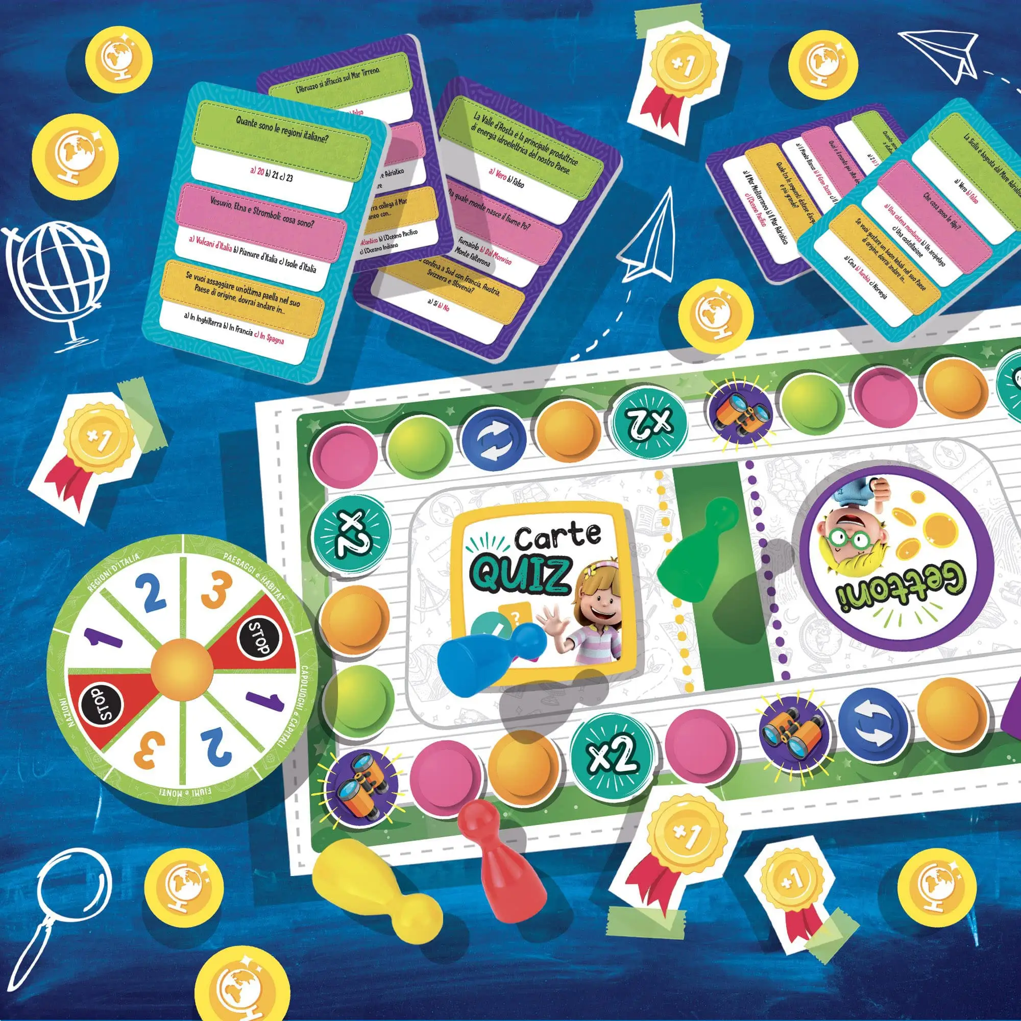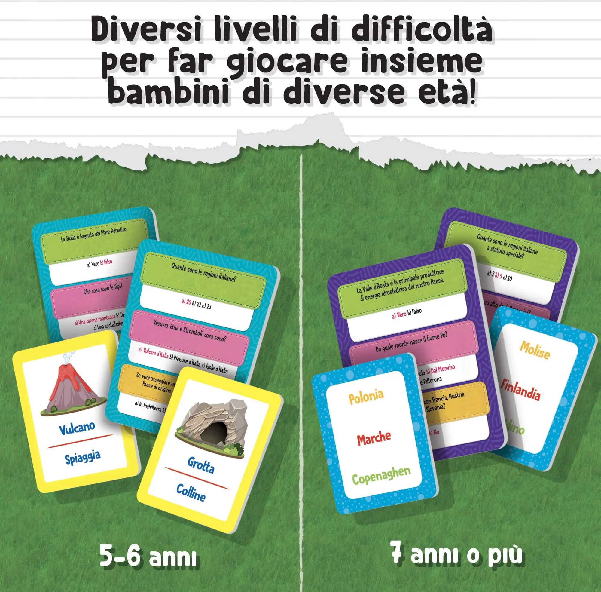 Un gioco di percorso a quiz, basato sui programmi della scuola primaria, per acquisire le tue prime nozioni di geografia. Grazie ai tre livelli di difficoltà, possono giocare insieme bambini di età diversa. Rispondi alle divertenti domande, avanza sul tabellone e conquista le coccardine!
