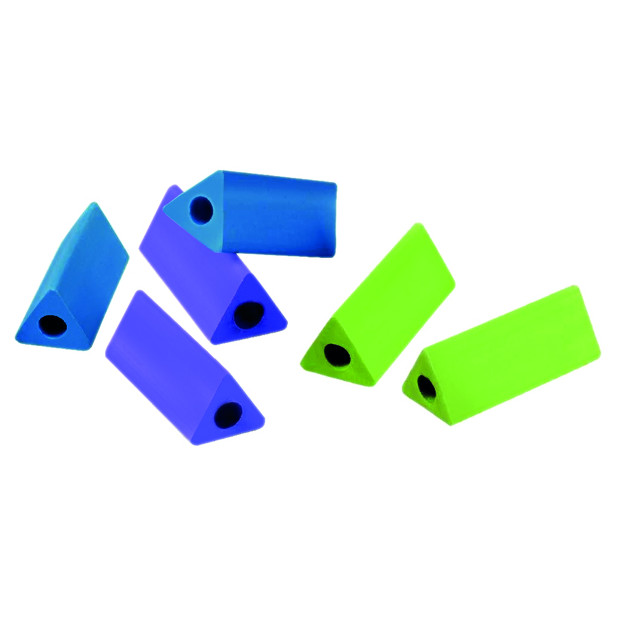 Impugnature per matite triangolari in busta da 6 pezzi. Le impugnature permettono di rendere la presa della matita confortevole e di correggere la posizione delle dita.